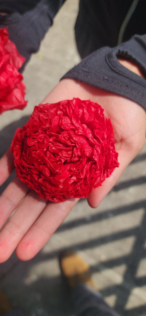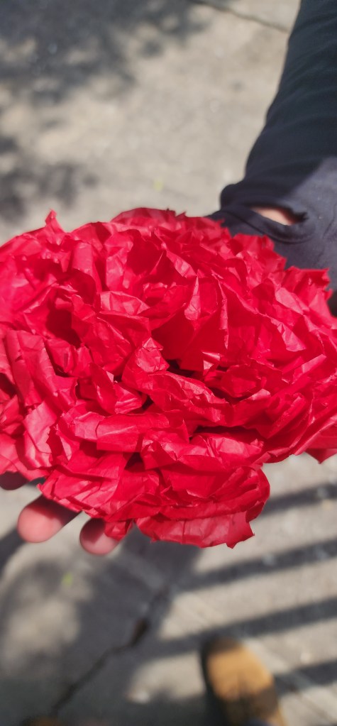 Asignatura Tecnología : Elaboración de Corona de Flores con Flores de Cemapsúchil de Papel de China