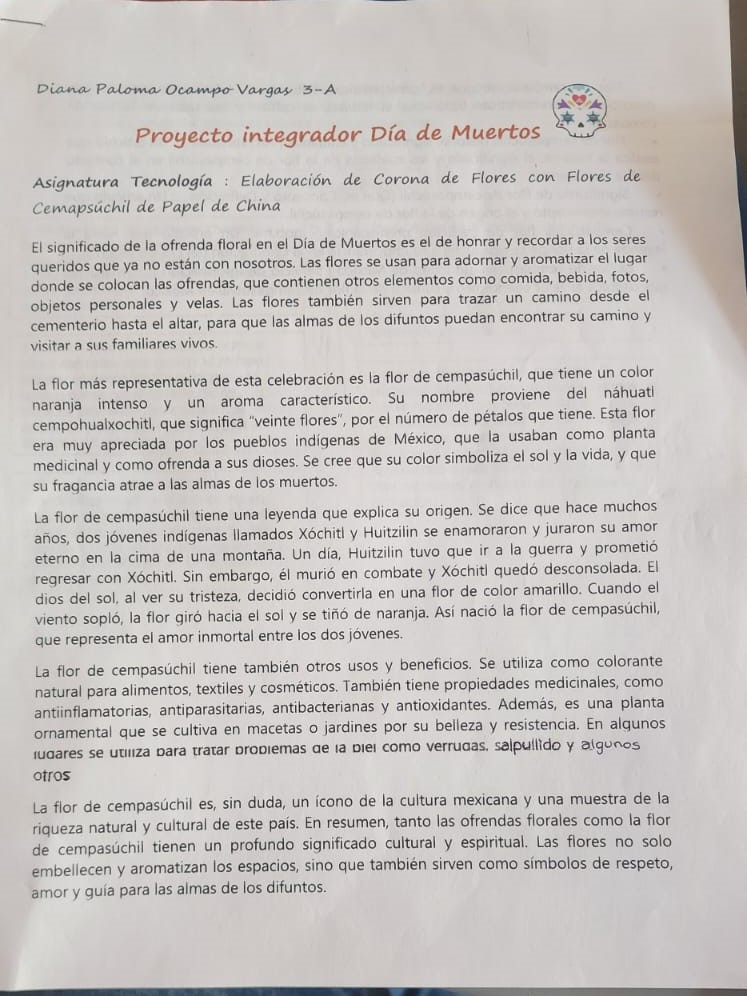 Actividad 1 .- Partimos de Nuestro elemento central de la actividad la Flor de cempasúchil, de la cual se Investiga y Realiza;