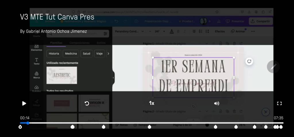 Una Presentación Multimedia, mostrando la distribución de su interfaz, la edición de los objetos y la manera en la cual se puede compartir el producto Terminado.